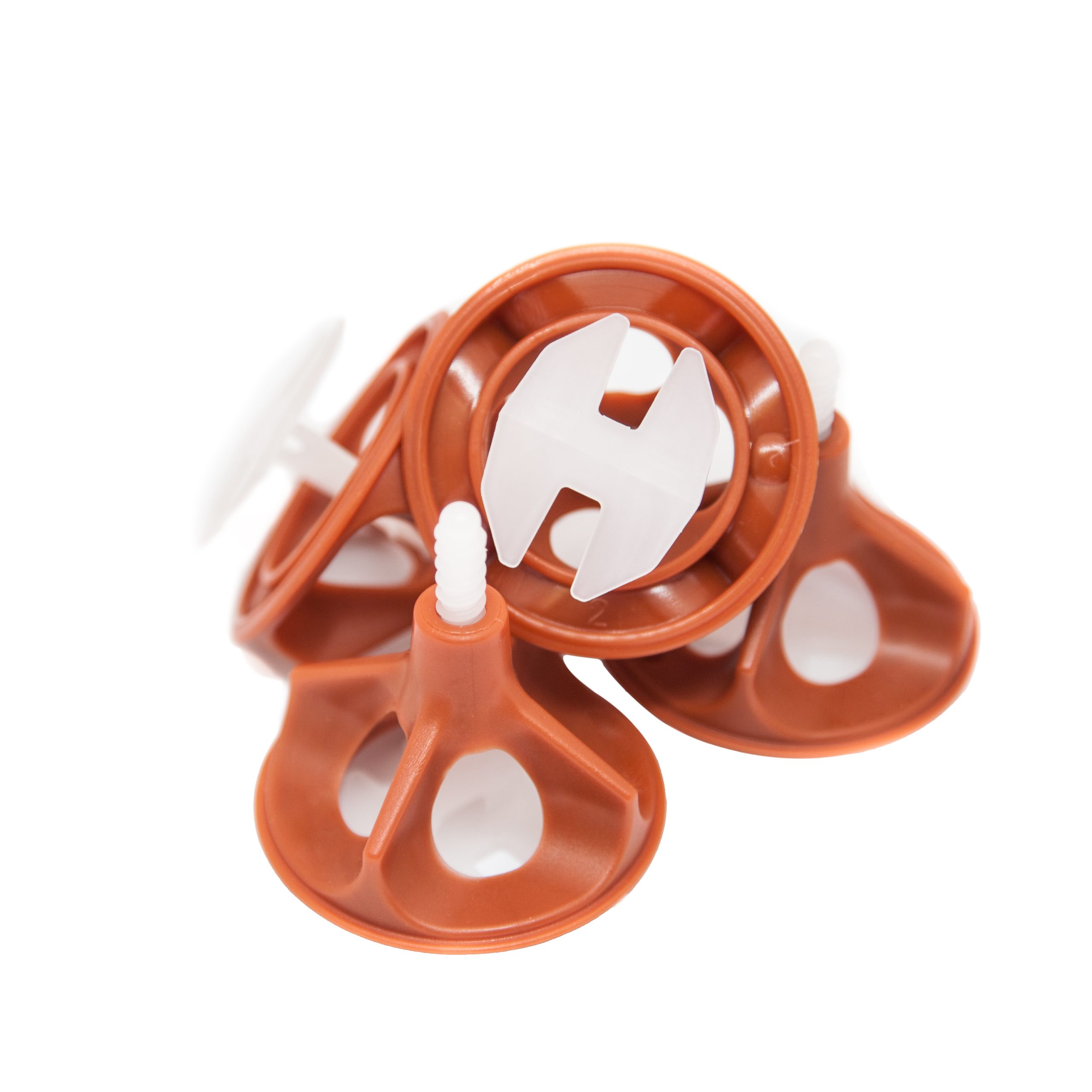 Имеет винтовую конструкцию. Система прочно фиксирует плитку путём накручивания гайки на винтовую основу. Эргономичный и интуитивно понятный дизайн . После того, как клеевой состав высох, гайку барашковую  удаляют, ударяя  вдоль направления шва. Рекомендуем  использовать  резиновый молоток.
